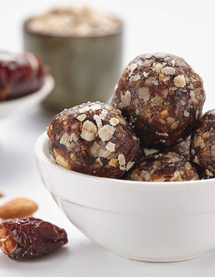 One of the sweetest fruits across the world, dates are rich in fiber content and particularly rich in proteins and vitamins. Used as a replacement of sugar in a lot of culinary dishes, dates combine with healthful oats, to make this Laddoo, a great, energy-packed, naturally-sweet, fiber-rich, healthy meal/snack replacement.