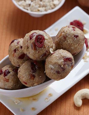 One of the sweetest fruits across the world, dates are rich in fiber content and particularly rich in proteins and vitamins. Used as a replacement of sugar in a lot of culinary dishes, dates combine with healthful oats, to make this Laddoo, a great, energy-packed, naturally-sweet, fiber-rich, healthy meal/snack replacement.